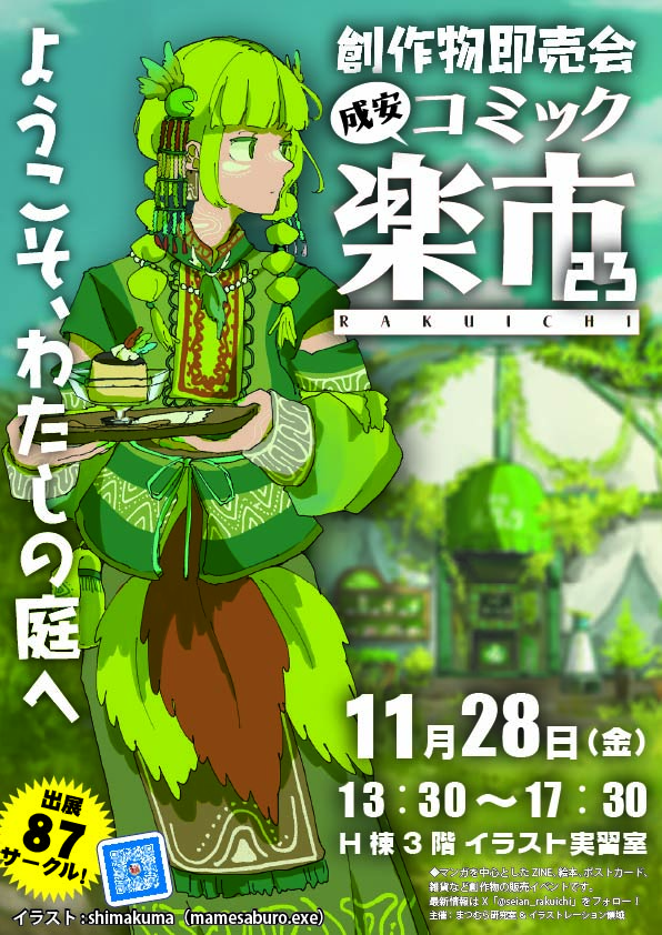 成安コミック楽市は、マンガや雑貨などの手作りの創作物の販売を行う「コミケ・コミティア」スタイルの学内即売イベントです。